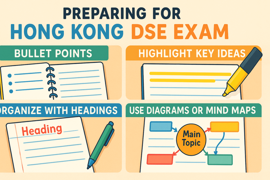 準備香港DSE考試可能會讓人感到壓力,但掌握做筆記的技巧,能令你的溫習更有效率,大大提升學習成果。以下是專為香港中學生設計的實用筆記方法: Preparing for the Hong Kong DSE exam can be stressful, but mastering the art of note-taking can make your study sessions more efficient and boost your learning outcomes. Here are practical strategies tailored for Hong Kong secondary students: 1. 使用項目符號(Bullet Points)令重點更清晰 Use Bullet Points for Clarity 將複雜的資訊拆解成簡明易讀的項目符號。 只記錄最重要的事實、定義或步驟。 這種格式有助於你在溫習時快速回顧和記憶重點。 Break down complex information into […]
