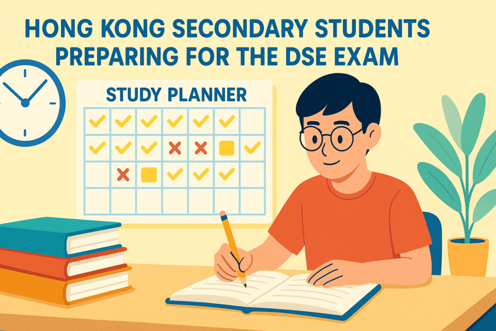 面對香港DSE考試,很多同學會感到壓力很大。其實,建立良好的時間管理習慣,是提升學習成效、減輕壓力的有效方法。以下是專為香港中學生而設的實用時間管理指南: Facing the Hong Kong DSE exam can feel overwhelming, but establishing strong time management habits is one of the most effective ways to improve your learning outcomes and reduce stress. Here’s a practical guide tailored for Hong Kong secondary students: 1. 訂立明確目標 Set Clear Goals 清楚規劃每週及每月想要達成的目標。 將大型目標(例如「完成所有生物科筆記」)拆分為小步驟(如「本週溫習第一章」)。 Define what you want to achieve each […]